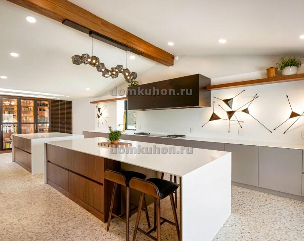 Откройте для себя кухню "Лори", где современный дизайн сочетается с функциональностью и стилем. Эта кухня предлагает гладкие фасады в теплых деревянных тонах и чистые белые поверхности, создавая просторное и светлое пространство. Стильные современные светильники и арт-декор на стенах придают интерьеру уникальность и характер. Просторный остров с комфортными барными стульями идеален для утреннего кофе или вечернего коктейля, делая кухню "Лори" сердцем дома.